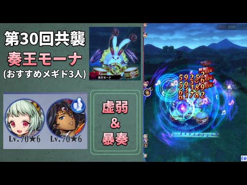 Rジズとヴェルドレをアタッカーにしました。(正直にいうとヴェルドレは入れたかっただけ、いなくてもいい) モーナが多くスキルをばら撒けば3ターンで倒せます。